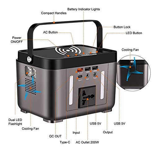 ★ Contain Wireless Charger : Portable power station is equipped with a 200 watt-hour lithium-ion battery pack. Portable generator supports most smart phones that equipped with QI standard technology or other QI enable devicesA