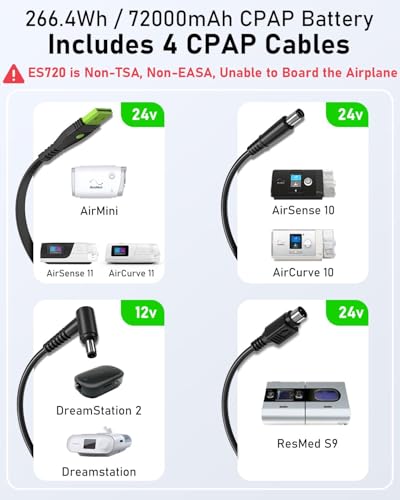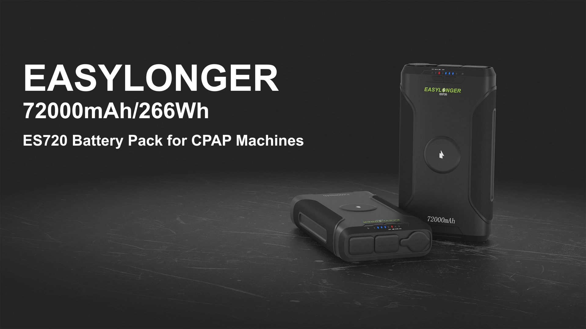 Specification: EASYLONGER ES720 CPAP Battery 72000mAh 266Wh CPAP Battery Pack for Camping 12V 24V CPAP Power Supply for ResMed AirSense 11/ AirSense 10/ S9/ AirMini/AirCurve 10/ Philips Dreamstation