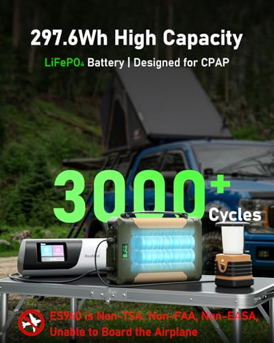 Superior Safety: ES960 CPAP power supply built-in LiFePO4, after a 3000 full life cycle gets down 80% of its original capacity while being safer and having a longer service life. Adopts advanced BMS that automatically identifies the charging style that matches different devices and protection against overcurrent, overheating, overcharging, short-circuiting